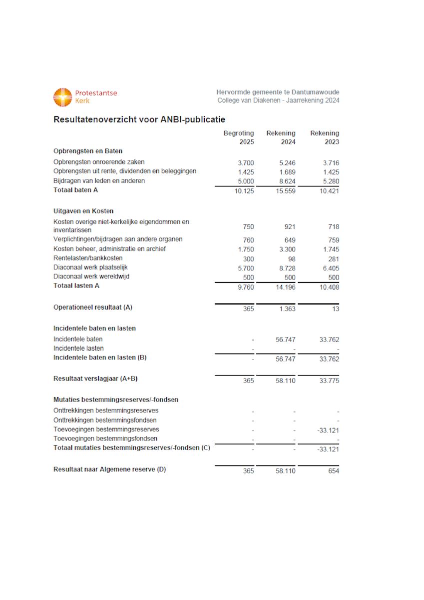 hieronder aan. Gemeenten en diaconieën gebruiken voor de publicatie van de financiële